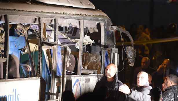 இதில் பேருந்து சின்னாபின்னமாகச் சிதறியது. பேருந்தில் பயணம் செய்த 3 சுற்றுலாப் பயணிகள், மற்றும் எகிப்தைச் சேர்ந்த ஒரு சுற்றுலா வழிகாட்டி ஆகியோர் உடல் சிதறி உயிரிழந்தனர். எகிப்தைச் சேர்ந்த டிரைவர் உள்ளிட்ட 11 பேர் பலத்த காயங்களுடன் மீட்கப்பட்டு மருத்துவமனையில் சேர்க்கப்பட்டனர். இந்த தாக்குதலுக்கு எந்த அமைப்பும் பொறுப்பேற்கவில்லை.