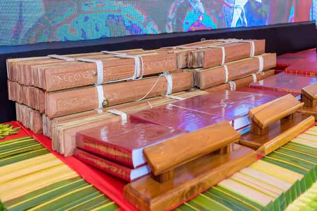 அந்த நிகழ்வில் திரிபீடகத்தை தேசிய மரபுரிமையாக பிரகடனப்படுத்தியதைப்போன்று அதனை உலக மரபுரிமையாக பிரகடனப்படுத்துவதற்கு தேவையான தலையீட்டை தான் மேற்கொள்வதாக ஜனாதிபதி குறிப்பிட்டிருந்ததற்கு ஏற்ப, அதற்கான அமைச்சரவை பத்திரம் ஜனாதிபதியினால் அமைச்சரவைக்கு சமர்ப்பிக்கப்பட்டிருந்தது.