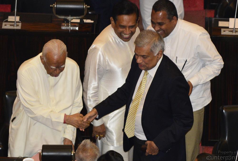 16 பாராளுமன்ற உறுப்பினர்களைக் கொண்டிருந்த ( பிறகு அந்த எண்ணிக்கை 14 ஆகக் குறைந்துவிட்டது) கூட்டமைப்பு விக்கிரமசிங்்கவின் அரசாங்கத்தின் இருப்பை உறுதிசெய்வதில் முக்கியமான பாத்திரமொன்றை வகித்தது.ஆனால், கூட்டமைப்பின் யாழ்ப்பாண மாவட்ட பாராளுமன்ற உறுப்பினர் எம்.ஏ.சுமந்திரனின் உறுதியான ஆதரவும் முக்கியமான பங்களிப்பும் இல்லாமல் இருந்திருந்தால் புதிதாக நியமிக்கப்பட்ட பிரதமர் மகிந்த ராஜபக்ச ஐக்கிய தேசிய முன்னணியைச் சேர்ந்த பாராளுமன்ற உறுப்பினர்களில் கணிசமான எண்ணிக்கையானவர்களைத் தனது பக்கத்துக்கு இழுத்தெடுத்து தனது நிலையை வலுப்படுத்துவதில் வெற்றிபெற்றிருப்பார்.