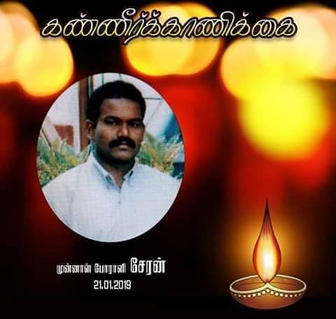 தமிழீழ விடுதலைப் புலிகளின்முன்னாள் போராளி சேரன் அவர்கள் புலம்பெயர் தேசமான லண்டனில் சுகவீனம் காரணமாக 21-01-2019 அன்று காலமானார்.