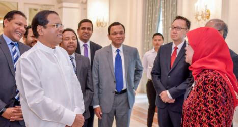 சிங்கப்பூரின் இஸ்தானா மாளிகைக்கு சென்ற ஜனாதிபதியை, சிங்கப்பூர் ஜனாதிபதி சிநேகபூர்மாக வரவேற்றார், அதனைத் தொடர்ந்து இரு நாட்டு தலைவர்களும் சுமூகமான கலந்துரையாடலில் ஈடுபட்டனர்.
