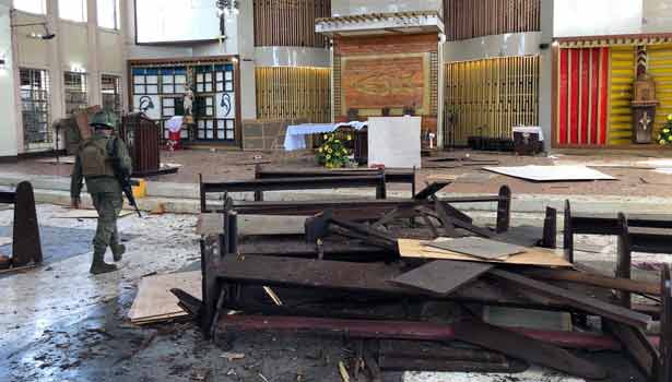 தெற்கு பிலிப்பைன்ஸ் ஜோலோ தீவில் கத்தோலிக்க தேவாலயத்தை குறிவைத்து தாக்கப்பட்ட குண்டு வெடிப்பில் 27 பேர் பரிதாபமாக உயிரிழந்தனர்.