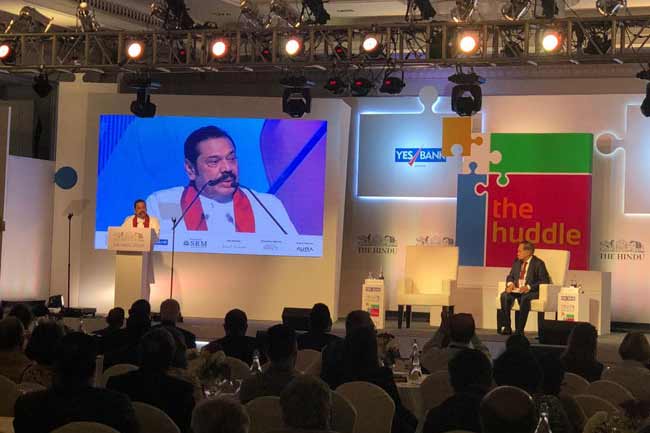 இந்தியாவிற்கு விஜயம் செய்துள்ள மஹிந்த ராஜபக்ஷ த ஹிந்து பத்திரிகையால் ஏற்பாடு செய்யப்பட்டிருந்த மாநாடு ஒன்றில் இன்று பங்கேற்று உரையாற்றினார்.