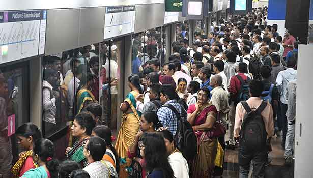வார நாட்களில் 3,400 மாநகர பஸ்கள் 675 வழித் தடங்களில் இயக்கப்பட்டு வருகிறது. மெட்ரோ ரெயில் தொடக்கத்தையொட்டி இலவச பயணம் அனுமதிக்கப்பட்டதால் கூட்டம் குறைந்தது.
