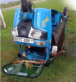 மட்டக்களப்பு, படுவான்கரை கோயில்போரதீவு பிரதான வீதியில் பயணிகளை ஏற்றிச் சென்ற முற்சக்கர வண்டி வீதியில் நின்றுகொண்டிருந்த கட்டாக்காலி மாட்டுடன் மோதுண்டதில் முற்சக்கர வண்டி குடைசாந்து விபத்துக்குள்ளாகியது.