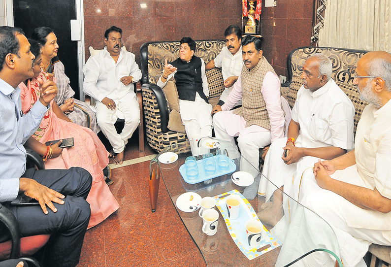 இந்தநிலையில் அ.தி.மு.க. கூட்டணியில் தே.மு.தி.க. இணைய இருப்பதாக தகவல்கள் வெளியானது. இதற்கிடையில் அ.தி.மு.க.-பா.ஜ.க. கூட்டணி உறுதி செய்யப்பட்ட நிலையில், மத்திய மந்திரி பியூஸ் கோயல் சென்னை சாலிகிராமத்தில் உள்ள விஜயகாந்த் இல்லத்துக்கு நேற்று மாலை 6 மணிக்கு வந்தார். பா.ஜ.க. நிர்வாகிகள் முரளிதரராவ், பொன் ராதாகிருஷ்ணன், தமிழிசை சவுந்தரராஜன், சி.பி. ராதாகிருஷ்ணன், இரா.பிரகாஷ் ஆகியோரும் உடன் சென்றனர்.