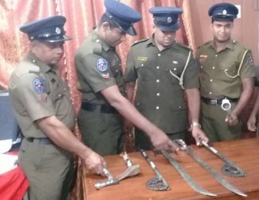 இந் நிலையில் யாழ். மாவட்ட விசேட குற்ற தடுப்பு பிரிவினர் நான்கு பேரை கைது செய்துள்ளதுடன் அவர்களிடமிருந்து வாள்கள் கோடாரிகள் உள்ளிட்ட ஆயுதங்களையும் மீட்டுள்ளனர்.