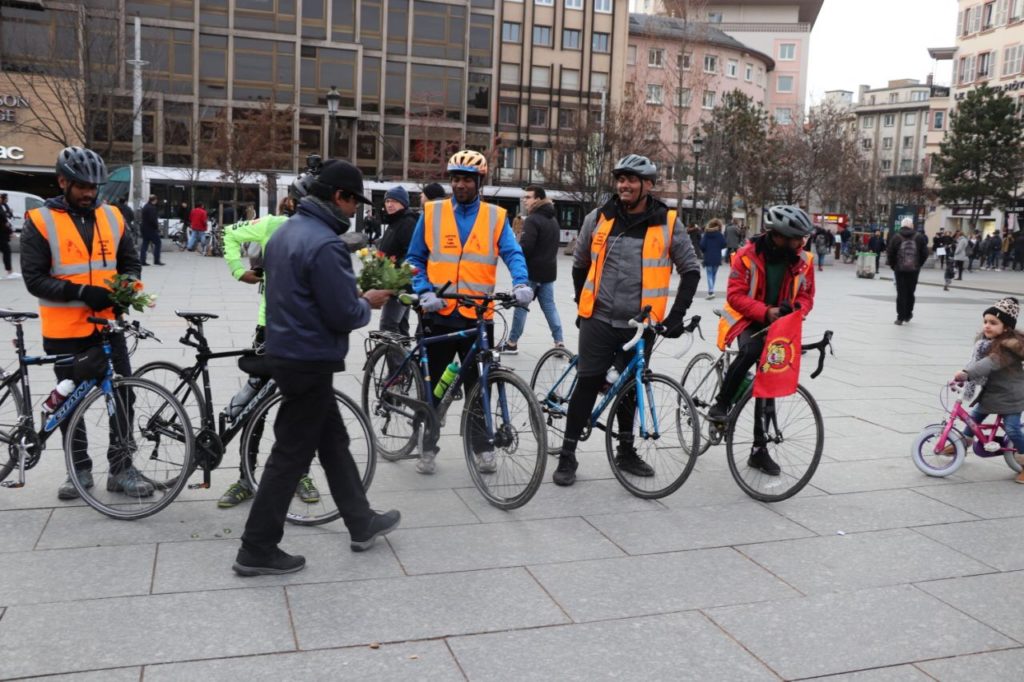 ஈருருளிப் பயணத்தை மேற்கொண்ட இளையோருக்கு ஸ்ராஸ்பூர்க் நகரமக்கள் உற்சாகமாக கைகளைத்தட்டி, மலர்ச் செண்டு கொடுத்து வரவேற்றனர். தொடர்ந்து ஞாயிறு, திங்கள் கிழமைகளில் பிரான்சினூடாகப் பயணித்து திங்கட்கிழமை பி.பகல் 5மணியளவில் சுவிஸ் பாசல் நகரை சென்றடையவுள்ளது. அதே நேரம் ஒவ்வொரு நாட்டின் மாநகரங்களிலும் அந் நகர முதல்வர்களைச் சந்தித்து மனுக் கொடுத்து ஈருருளிப் பயணத்தை மேற்கொண்டுவருகின்றனர் என்பதும் குறிப்பிடத்தக்கது. 17வது தடவையாக மேற்கொள்ளப்படுகின்ற மனிதநேய ஈருருளிப் பயணமானது எதிர்வரும் மார்ச் மாதம் 4ம் திகதி சுவிஸ் நாட்டின் யெனீவா நகரின் ஈகைப்பேரொளி முருகதாசன் திடலில் நிறைவுக்கு வரும்.