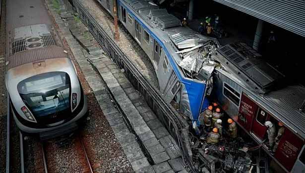 பிரேசிலில் நின்றுகொண்டிருந்த ரெயிலின் மீது மற்றொரு ரெயில் மோதி கொண்ட விபத்தில் டிரைவர் பலியானார்.