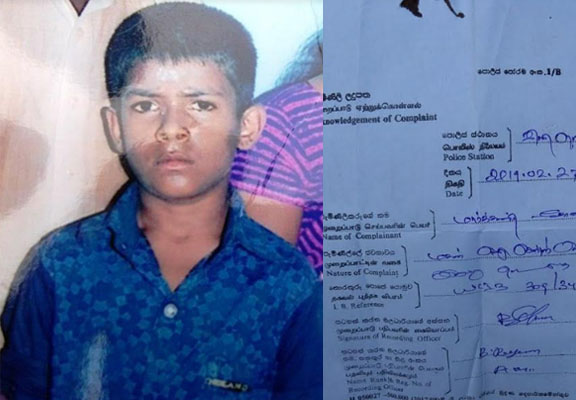 இது தொடர்பில் கிளிநொச்சி பொலிஸ் நிலையத்தில் முறைப்பாடு செய்த தந்தை மகன் தொடர்பில் தகவலறிந்தால் தன்னுடைய தொலைபேசிக்கு அறியத் தருமாறும் தயவுடன் கோரி நிற்கின்றார். (0779240145)