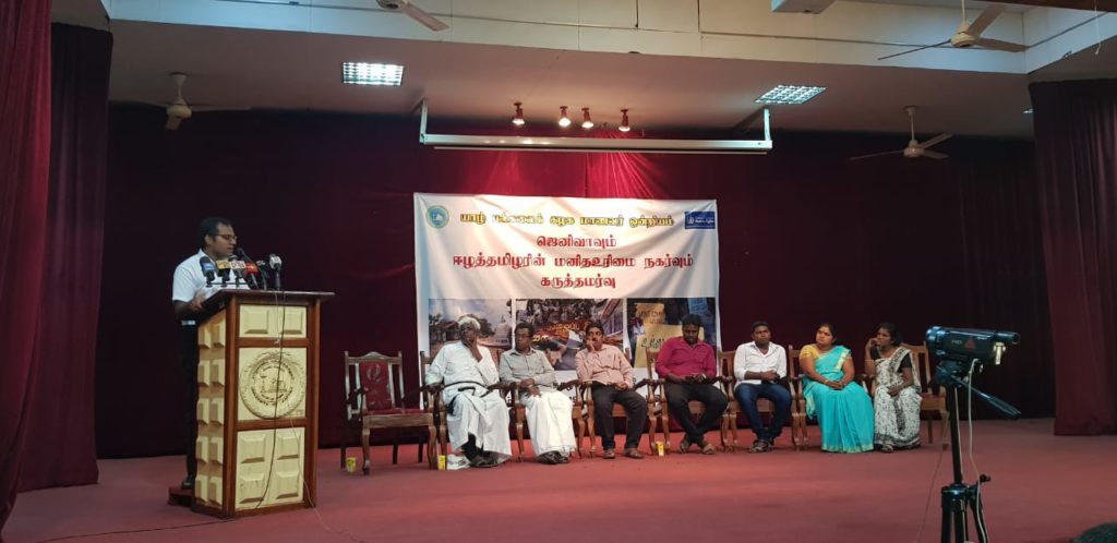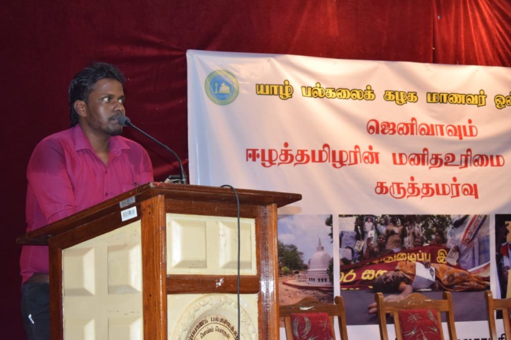 ஜெனிவாவும் ஈழத் தமிழர்களின் மனித உரிமை நகர்வும் என்ற கருத்தமர்வு மார்ச் 6ஆம் நாள் யாழ் பல்கலைக்கழக கைலாசபதி அரங்கில் நேற்று பிற்பகல் 2 மணிக்கு இடம் பெற்றது.
