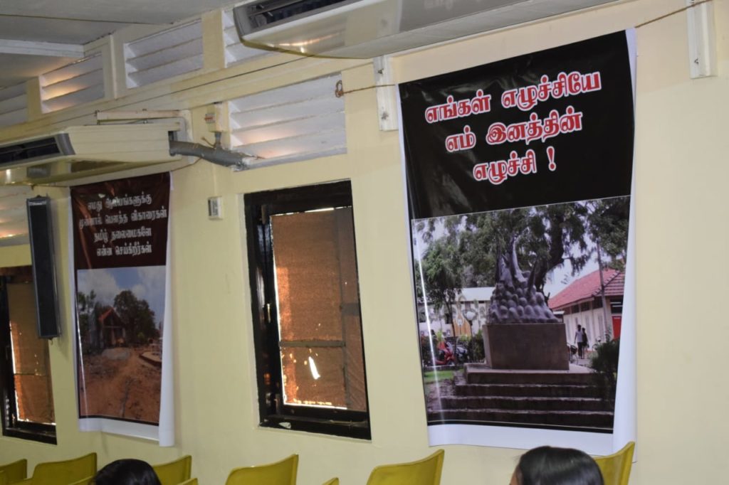 மண்டபத்தில் தற்போதைய தமிழர் நிலையையும் விளித்துக் கொள்ள வேண்டிய தேவையையும் வலியுறுத்திய 20 பதாதைகளும் மண்டபத்தின் உள்ளேயும் வெளியேயும் கட்டப்பட்டிருந்தன. இறுதியில் அறிக்கை வாசிக்கப்பட்டு பொது அமைப்புக்களின் கையொப்பங்களும் பெறப்பட்டு முக்கியமான தூதராலயங்களுக்கு கொடுக்கவும் ஏற்பாடு செய்யப்பட்டுள்ளது.