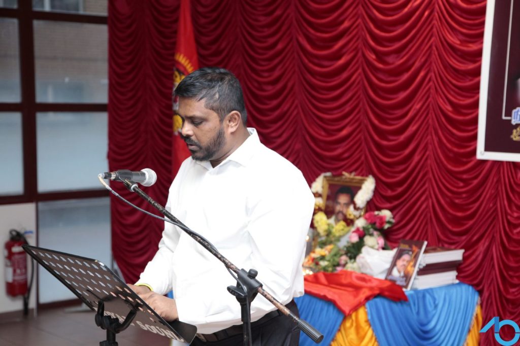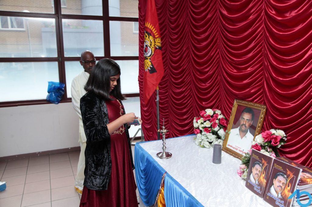 திருஉருவப்படத்திற்கான மலர்மாலையை உடகவியலாளர் நாட்டுப்பற்றாளர் புண்ணியமூர்த்தி சத்தியமூர்த்தி அவர்களின் துணைவியார் திருமதி நந்தினி சத்தியமூர்த்தி அவர்கள் அணிவித்தனர். அகவணக்கத்தைத் தொடர்ந்து நிகழ்வில் கலந்துகொண்ட அனைவரும் மலர் வணக்கம் செய்தனர். தொடர்ந்து தலைமையுரையினை ஊடகமையத்தின் உபதலைவரும் ஈழமுரசின் ஆசிரிய குழுவைச் சேர்ந்தவருமான திரு.க.பகீரதன் அவர்கள் ஆற்றியதைத் தொடர்ந்து – நினைவுப் பகிர்வினை செல்வி சிந்து சத்தியமூர்த்தி ஆற்றியிருந்தார்.