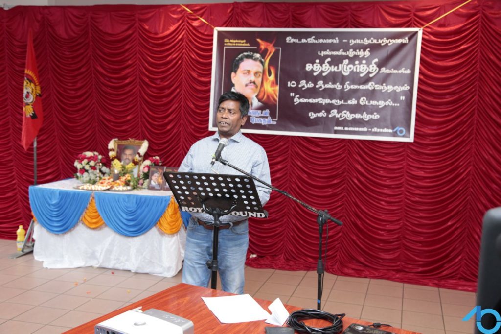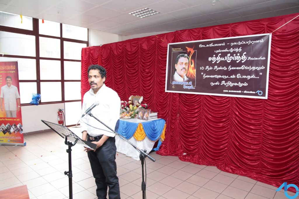 பிரான்சில் ஊடகவியலாளர் நாட்டுப்பற்றாளர் பு.சத்தியமூர்த்தி அவர்களின் 10-ம் ஆண்டு நினைவுசுமந்து ‘நினைவுகளுடன் பேசுதல்” நூல் அறிமுகம்!