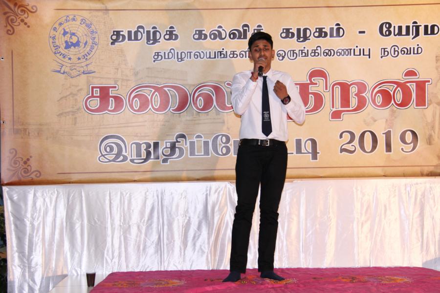 யேர்மனியில் உள்ள ஐந்து மாநிலங்களில் தெரிவுப்போட்டிகள் நடைபெற்று அதில் முதலாமிடத்தைப் பெற்ற மாணவர்கள் இறுதிப் போட்டியில் பங்குபற்றியிருந்தனர். போட்டிகள் பல வகையாகப் பிரிக்கப்பட்டு நிகழ்ந்தன.சங்கீதம், தாயகப்பாடல், தமிழிசை, கும்மி நடனம், காவடி, கரகம், பரதநாட்டியம், தாயகப்பாடலுக்கான எழுச்சி நடனங்கள், நாட்டுக்கூத்து, நாடகம், ஆகியவற்றில் போட்டியிட்ட மாணவர்கள் சபையோரை ஆச்சரியத்துக்குள் கொண்டு சென்றனர்.