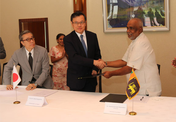 இதற்கான இருதரப்பு ஒப்பந்தமானது இன்று இலங்கைக்கான ஜப்பானிய தூதுவரின் இல்லத்தில் வைத்து இலங்கைக்கான ஜப்பானிய தூதுவர் அகிர சுகியமா மற்றும் சேவாலங்கா அமைப்பின் தலைவர் ஹர்ஷ குமார நவரத்ன ஆகியோருக்கிடையில் கைச்சாத்திடப்பட்டது.