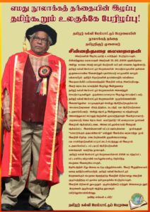 பல சான்றோர்களின் பாராட்டைப் பெற்றதுடன் இவரால் உருவாக்கப்பட்ட பட்டதாரி ஆசிரியர்களின் மனதையும் கவர்ந்த நூலாகும். தமிழர் கல்வி மேம்பாட்டுப் பேரவையினால் 2018 நடாத்தப்பட்ட பட்டமளிப்பு விழாவில் கலந்துகொண்டு சிறப்பித்த பெருமை இவரையே சாரும். தேசியத்தின் மீது அளவு கடந்த பற்றுக்கொண்ட இவர் இறுதிக்காலம் வரை தமிழ்ப்பணியாற்றி, தமிழர் கல்வி மேம்பாட்டுப் பேரவைக்குப் பெருமை தேடித்தந்த இவரின் பிரிவானது அவரின் குடும்பத்திற்கு மட்டுமல்ல தமிழுலகுக்கே பேரிழப்பாகும். இவரின் பிரிவால் துயருறும் குடும்பத்தினர் மற்றும் அனைவருடனும் பேரவைக் குடும்பமும் ஆழ்ந்த துயரைப் பகிர்ந்துகொள்கின்றது.