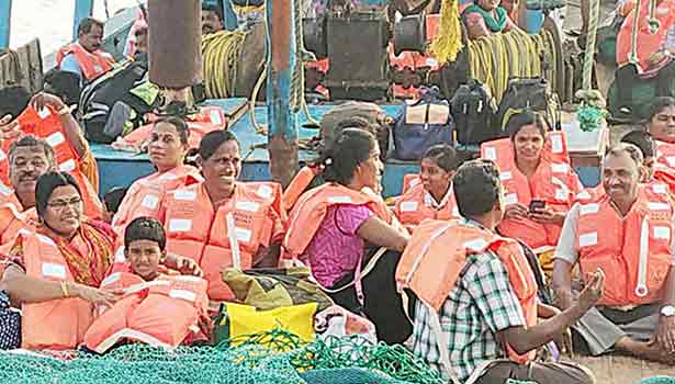 விழாவில் பங்கேற்பதற்காக 65 விசைப்படகுகள் மற்றும் 15 நாட்டுப் படகுகளில் மீனவர்கள் இன்று காலை புறப்பட்டுச் சென்றனர்.