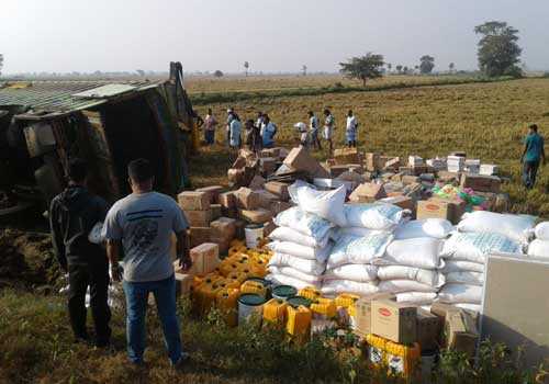 லொறியின் டயார் ஒன்று வெடித்ததாலேயே, லொறி குடை சாய்ந்துள்ளதாக தெரிவிக்கப்படுகிறது.