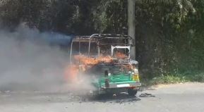 நாவலபிட்டியிலிருந்து தலவாகலை நோக்கிப் பயணித்த முச்சக்கரவண்டி ஒன்று நாவலபிட்டி தலவாகலை பிரதான வீதியின் கடியஞ்சேன பகுதியில் வைத்து இன்று பகல் 2.30 மணியளவில் திடீரென தீ பிடித்து எரிந்துள்ளதாக தலவாகலை பொலிஸார் தெரிவித்தனர்.