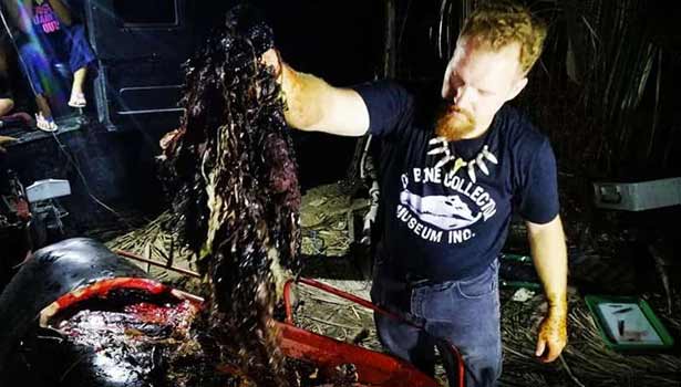 இந்த நிலையில் பிலிப்பைன்சின் படாங்காஸ் மாகாணம் மபினி நகரில் உள்ள கடலில் சுமார் 16 அடி நீளம் கொண்ட திமிங்கலம் ஒன்று இறந்த நிலையில் கரை ஒதுங்கியது. சுற்றுச்சூழல் ஆராய்ச்சியாளர்கள் அந்த திமிலங்கத்தை கைப்பற்றி ஆய்வு செய்தனர்.