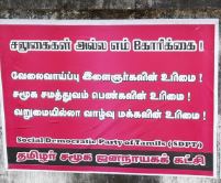 தமிழர் சமூக ஜனநாயகக் கட்சி என குறிப்பிடப்பட்டுள்ள குறித்த பிரசுரத்தில் வேலைவாய்ப்பு இளைஞர்களின் உரிமை, சமூக சமத்துவம் பெண்களின் உரிமை , வறுமையில்லாத வாழ்வு மக்களின் உரிமை என பிரசுரிக்கப்பட்டுள்ள அப் பிரசுரங்கள் வடமராட்சியின் சில பகுதிகளில் ஒட்டப்பட்டுள்ளன.