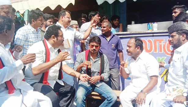 இன்று 2-வது நாளாக வேலூர் மாவட்டத்தில் உதயநிதி ஸ்டாலின் பிரசாரம் செய்து வருகிறார். பேரணாம்பட்டில் இன்று பிரசாரம் செய்தார். அங்கு சாலையோர டீ கடையில் கட்சியினருடன் அமர்ந்து டீ குடித்தார்.