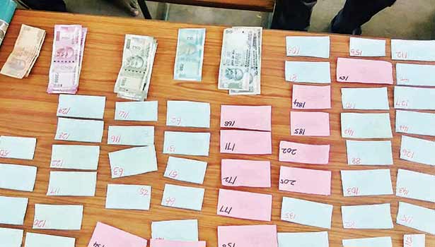 இதனை கண்ட தேர்தல் பறக்கும் படையினர் அதிர்ச்சி அடைந்து அடுத்த நிமிடம் பெட்ரோல் போட்ட பங்க் ஊழியர் கையில் வைத்திருந்த 100 டோக்கன்களையும், ரூ. 10 ஆயிரத்து 870 ரொக்க பணத்தையும் பறிமுதல் செய்து தாசில்தார் அலுவலகத்திற்கு எடுத்து சென்றனர்.