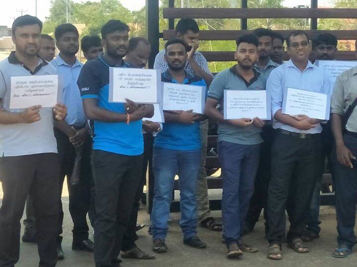 அனைத்துப் பல்கலைக்கழகங்களிலும் ஊழியர் காப்புறுதித்திட்டமானது, பல்கலைக்கழக சுய நிதியீட்டத்தின் முழுமையான அல்லது மிகக் கணிசமான பங்களிப்புடன் இலங்கை முழுவதிலுமுள்ள அனைத்துப் பல்கலைக்கழகங்களிலும் சிறப்பாக நடைமுறைப்படுத்தப்பட எமது பல்கலைக்கழகம் மட்டும் இதுகுறித்து எம்முடிவினையும் எடுக்காமை போன்ற விடயங்களில் நடவடிக்கை எடுக்கமை போன்ற பல்வேறு விடயங்களை கண்டித்து இன்று காலை 10.30 மணி முதல் மதியம் 12.00 மணி வரை கடமையிலிருந்து விலகி கவனயீர்ப்பு போராட்டத்தில் ஈடுபட்டனர்.