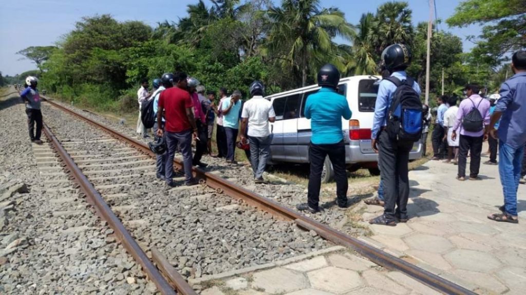 இந்நிலையில் வேகமாக வந்த ரயில் ஹயஸ் வாகனத்தின் முன்பகுதி மீது மோதி வாகனம் துாக்கி வீசப்பட்டுள்ளது.