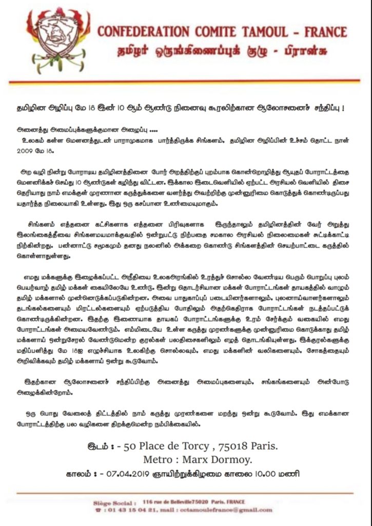 இதற்கான ஆலோசனைச் சந்திப்பிற்கு அனைத்து அமைப்புகளையும், சங்கங்களையும் அன்போடு