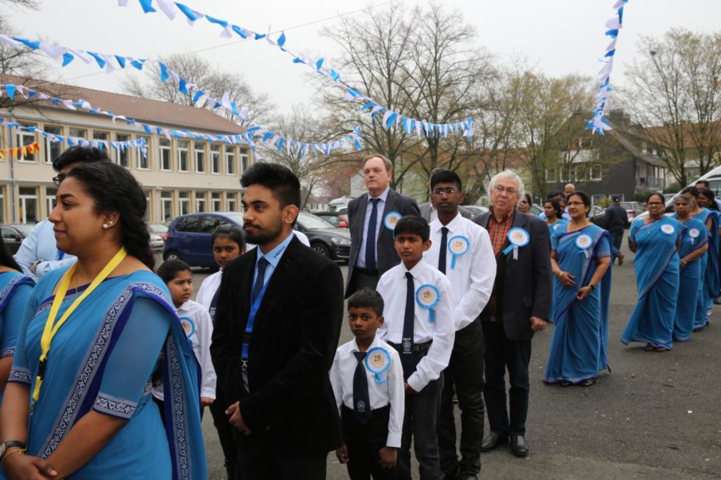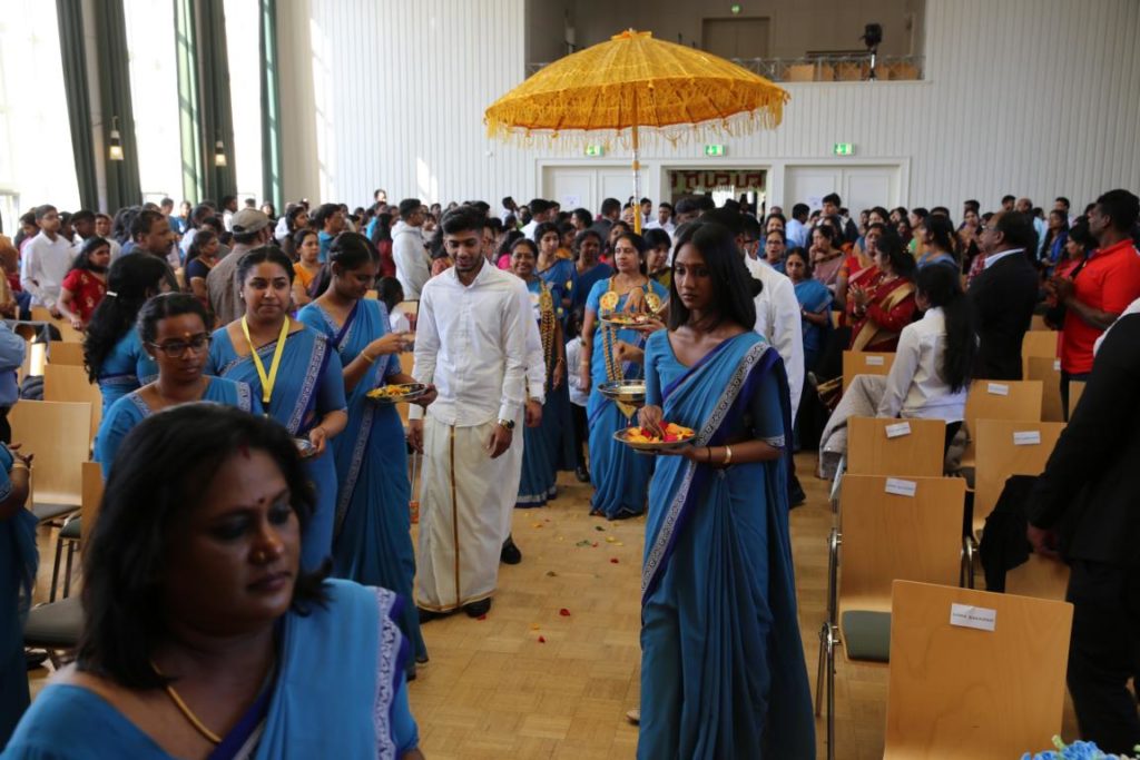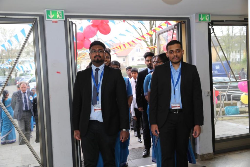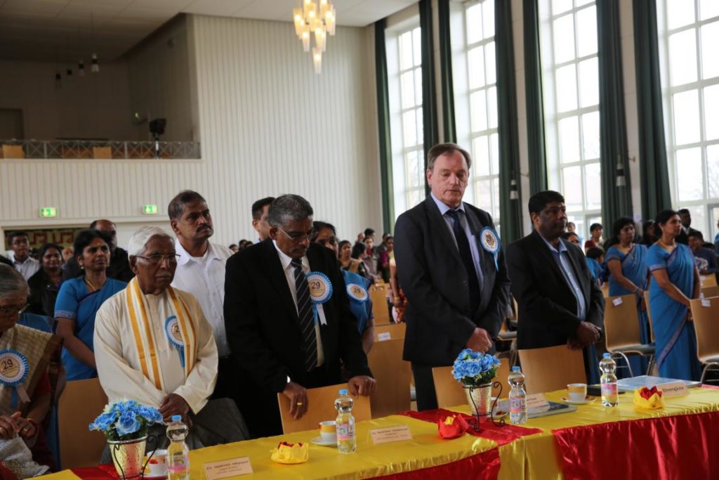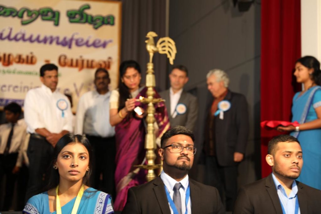 பிரதமவிருந்தினர்களாக யாழ். பல்கலைக்கழகத்தின் வாழ்நாள் பேராசிரியர் திரு. அருணாசலம் சண்முகதாஸ் அவர்களும், முனைவர் மனோன்மணி சண்முகதாஸ் அவர்களும், யேர்மனிய சமூக அமைப்பின் பணியாளரும், பிலபெல்ட் நகர முதல்வரும், மற்றும் யேர்மனியின் தேசியச் செயற்பாட்டாளர்களும். யேர்மனியில் இருபது வருடங்களுக்கு மேலாக தமிழ்ப்பணியாற்றிய தமிழ் வாரிதிகளும் தமிழ்மானிகளும் கலந்து கொண்டனர். மண்டப வாசலில் இருந்து மாணவர்கள், ஆசிரியர்கள், தமிழ்க் கல்விக் கழகத்தின் செயற்பாட்டாளர்கள், ஆகியோர் இவர்களை அழைத்துச் செல்ல மண்டபத்திற்குள் பெற்றோர்களும், பார்வையாளர்களும் எழுந்து நின்று கைதட்டி வரவேற்றனர்.