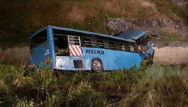 மலேசியாவில் மழைநீர் கால்வாய் மீது பஸ் மோதிய விபத்தில் சரக்கு விமான நிறுவனத்தில் பணியாற்றும் ஒப்பந்த ஊழியர்களில் 11 பேர் உடல் நசுங்கி உயிர் இழந்தனர். #