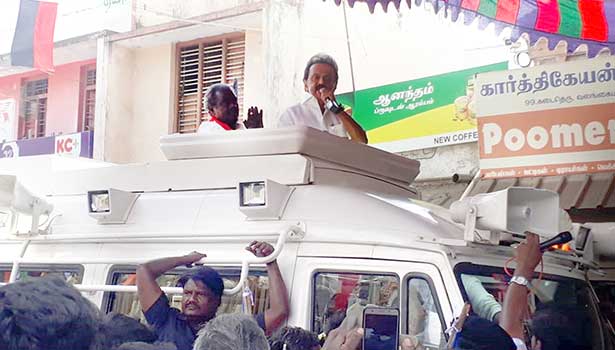 இதையொட்டி தி.மு.க. தலைவர் மு.க.ஸ்டாலின் கடந்த 20-ந்தேதி திருவாரூரில் தேர்தல் பிரசாரத்தை தொடங்கினார். அங்கு அவர் நாகை பாராளுமன்ற தொகுதி இந்திய கம்யூனிஸ்டு கட்சி வேட்பாளர் செல்வராஜ், திருவாரூர் தி.மு.க. வேட்பாளர் பூண்டி கலைவாணன் ஆகியோரை ஆதரித்து பிரசாரம் செய்தார்.