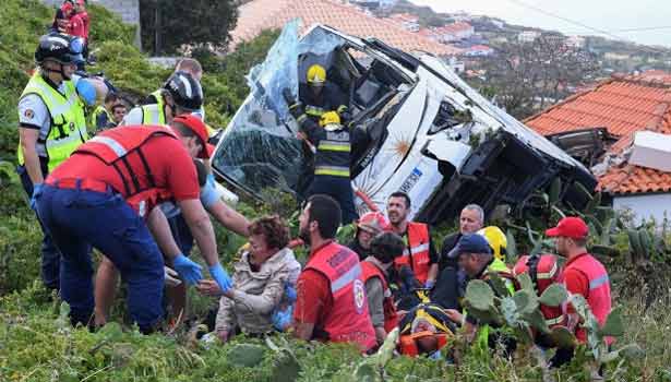 போர்ச்சுகலில் ஜெர்மனியை சேர்ந்த சுற்றுலா பயணிகளை ஏற்றிக்கொண்டு சென்ற பேருந்து பள்ளத்தில் கவிழ்ந்து விபத்துக்குள்ளானதில் 18 பெண்கள் உள்பட 29 பேர் சம்பவ இடத்திலேயே உயிர் இழந்தனர்.