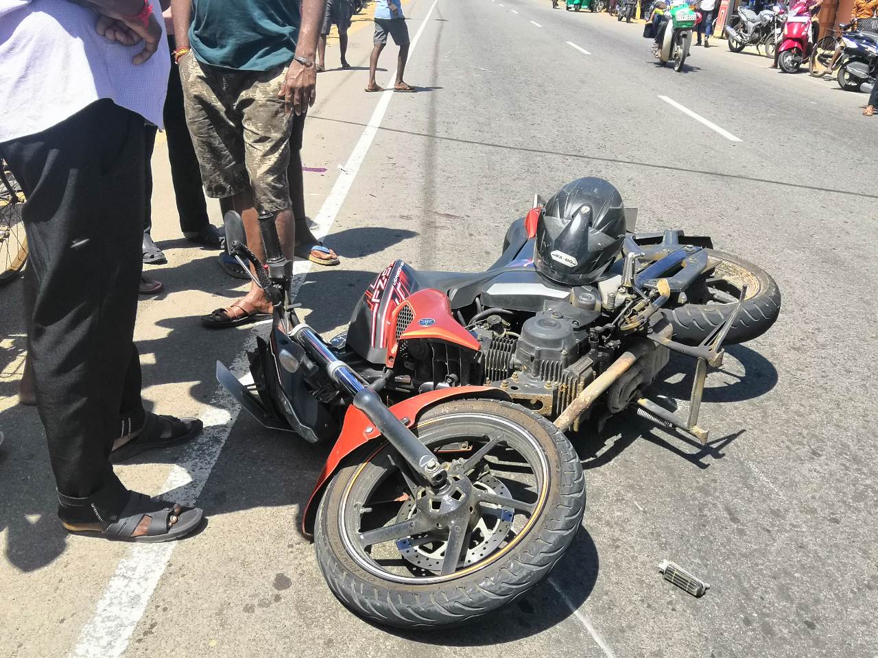 மோட்டார் சைக்கிலில் சென்ற அவரை பின்னால் மற்றுமொரு மோட்டார் சைக்கில் வந்த நபர் ஒருவர் மோதி தள்ளிவிட்டு அங்கிருந்து தப்பிச் சென்றுவிட்டதாக அச்சுவேலி பொலிஸார் தெரிவித்தனர்.