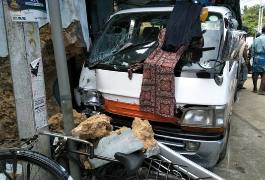 வீதியால் பயணித்த ஹயஸ் வாகனம் திடீர் என அருகில் இருந்த புடவையகத்திற்குள் புகுந்து விபத்துக்குள்ளானது.