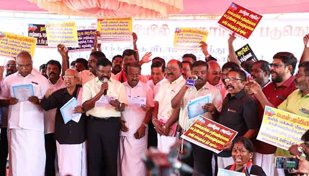 ஆர்ப்பாட்டத்தில் கவிஞர் காசி முத்துமாணிக்கம், காங்கிரஸ் வேட்பாளர் ஜெயக்குமார், விடுதலை சிறுத்தைகள் கட்சி நிர்வாகிகள் எஸ்.எஸ்.பாலாஜி, வன்னியரசு, உஞ்சையரசன், பாவரசு, பாலவன், செல்லத் துரை, ஆதவன், இரா. செல்வம் மற்றும் ஏராளமான தொண்டர்கள் பங்கேற்றனர்.