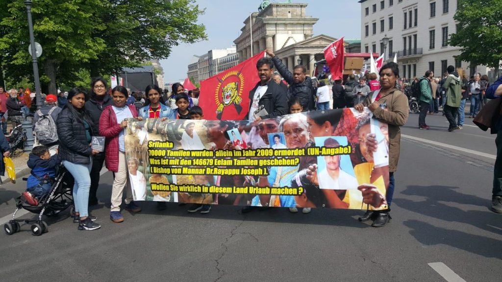 தமிழின அழிப்பை எடுத்துரைக்கும் பதாதைகளை தாங்கியவண்ணம் , யேர்மன் மொழியில் துண்டுப்பிரசுரங்களை வழங்கி பல்லின சமூகத்திடம் விழிப்புணர்வை மேற்கொண்டனர்.யேர்மன் தலைநகரில் நடைபெற்ற மே தின பேரணியில் தமிழீழ பாடல்களும் வேற்றின அமைப்புகளின் ஆதரவுடன் ஒலிக்கப்பட்டது குறிப்பிடத்தக்கது.
