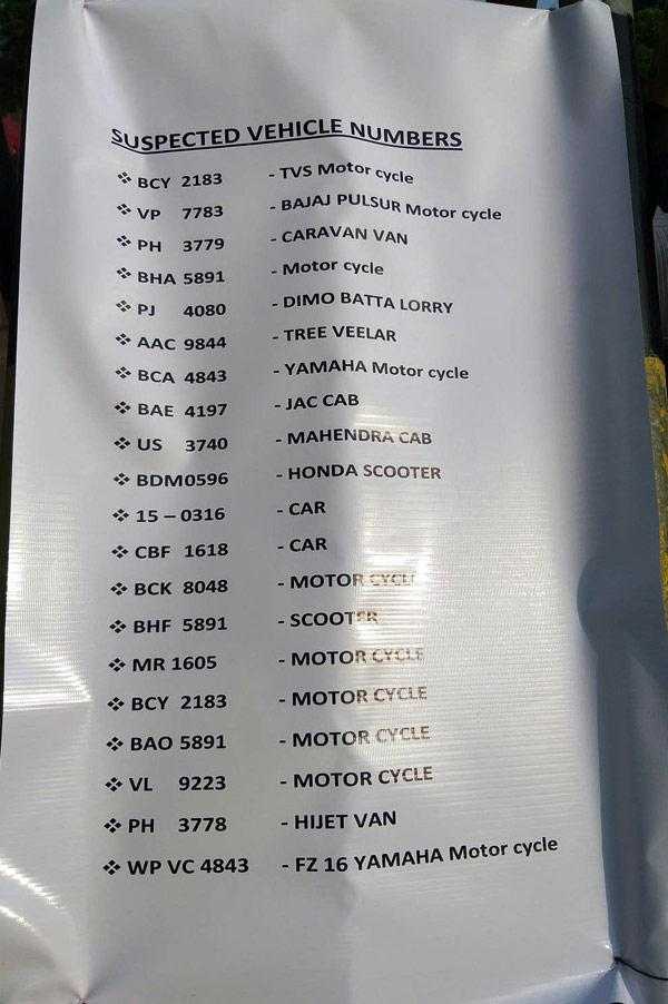 குறித்த வாகனங்களின் இலக்கங்கள் உள்ளடங்கலான தகவல்கள் வீதித் தடைகள் ஏற்படுத்தப்பட்டுள்ள இடங்களில் பொதுமக்களின் பார்வைக்காக வைக்கப்பட்டுள்ளமைக் குறிப்பிடத்தக்கது.