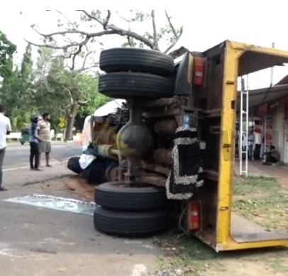 பளையிலிருந்து முறிகண்டி திசை நோக்கி பயணித்த டிப்பர் வாகனம் கிளிநொச்சி நீதிமன்றத்திற்கு அருகாமையில் ஏ9 வீதியில் உள்ள மரம் ஒன்றில் மோதியதாலேயே இந்த விபத்து சம்பவித்துள்ளது. வேகமாக பயணித்த டிப்பர், கட்டுப்பாட்டை இழந்து மரத்துடன் மோதியிருக்கலாம் என தெரிவிக்கப்படுகின்றது.