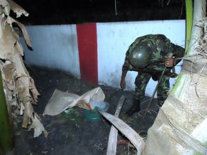 இந்நிலையில் சம்பவ இடமத்திற்கு சம்மாந்துறைப் பொலிசார்,விசேட அதிரடிப்படையினர் மற்றும் குண்டு செயலிழக்கும் பிரிவினர் ஆகியோர் விரைந்து வந்து குறித்த உரப்பையை சோதனையிட்ட வேளை அதனுள் ரி 56 துப்பாக்கிக்கான மகஸீன், வாள் மற்றும் ரம்போகோடரி என்பன இராணுவத்தினரால் மீட்கப்பட்டன.