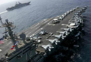 இந்த பதற்றமான சூழலில் ஈரானை அச்சுறுத்தும் வகையில் அமெரிக்கா தனது போர்க்கப்பல்களையும், போர் விமானங்களையும், தளவாடங்களையும் மத்திய கிழக்கு பகுதிக்கு அனுப்பியது.