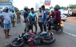 குறித்த பஸ் தரிப்பிடமற்ற பகுதியில் சடுதியாக தரிக்க முற்பட்டபோது, அதிக வேகமாக பயணித்த மோட்டார் சைக்கிள் மோதியதில் குறித்த விபத்து இடம்பெற்றுள்ளதாக ஆரம்பகட்ட விசாரணைகளில் தெரிய வந்துள்ளது.