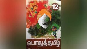 பிளஸ்-2 பொதுத்தமிழ் பாடபுத்தகத்தின் அட்டை படத்தில் பாரதியார் காவி தலைப்பாகை அணிந்துள்ளது போன்ற காட்சி சர்ச்சையை ஏற்படுத்தியுள்ளது.