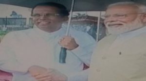 அங்கு ஜனாதிபதி மைத்திரிபால சிறிசேன கொட்டும் மழையிலும் அவரை குடைபிடித்து வரவேற்றார்.