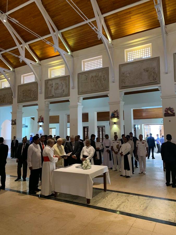 அங்கிருந்து ஜனாதிபதி செயலகத்தை நோக்கி புறப்பட்ட இந்தியப் பிரதமர் நரேந்திர மோடி செல்லும் வழியில் கடந்த ஏப்ரல் மாதம் 21 ஆம் திகதி தற்கொலை குண்டுத் தாக்குதலினால் பாதிக்கப்பட்ட கொழும்பு கொச்சிக்கடை புனித அந்தோனியார் தேவலாயத்தையும் பார்வையிட்டதுடன் வழிபாடுகளிலும் ஈடுபட்டார். அத்துடன் கொச்சிக்கடை புனித அந்தோனியார் ஆலய பங்குத்தந்தை மற்றும் பேராயர் கர்தினால் மல்கம் ரஞ்தித் ஆண்டகையையும் சந்தித்துத்து தனது கவலையையும் இரங்கலையும் தெரிவித்தார்.