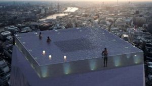 லண்டனில் 55 அடுக்கு மாடி கட்டிடத்தின் உச்சியில் புதிய தொழில்நுட்பத்தில் நீச்சல் குளம் அமைக்கப்பட்டுள்ளது. இது குறித்த சுவாரஸ்ய தகவல்களை பார்ப்போம்.