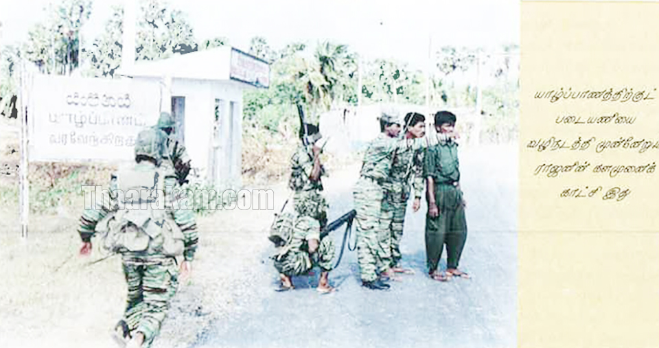 ஆனையிறவை வீழ்த்துவதற்கான இறுதிக்கட்டம். உலகப் போரியல் வரலாற்றில் முக்கிய பதிவாய்த் தலைவர் பிரபாகரன் அவர்கள் நிகழ்த்திய விந்தைமிகு படைநகர்த்தல். அந்த இத்தாவிற் போர்க்களத்தில்தான் ராஜனின் குரல் அதிகமாய் ஒலித்தது. அங்குதான் அவனது பெயர் அதிகமாகப் பேசப்பட்டது. அங்கிருந்த ஒவொரு தொலைத்தொடர்புச் சாதனமும் ‘றோமியோ’ என்ற அவனது ‘சங்கேத’ப் பெயரையே அதிகமாய் உச்சரித்தும் கேட்டும் இருக்கும். புலிகள் இயக்கம் நிகழ்த்திய அந்த வரலாற்றுச் சாதனைக் களத்தில் ராஜன் பங்கெடுத்த ஒவ்வொரு சண்டையுமே அவனை எம் வரலாற்றில் உயர்த்தியது. ஆனையிறவை வீழ்த்தும் எம் தலைவரின் போர்த்திட்டத்தின் அத்திவாரத்தை அசையாது காத்த அந்த வெற்றிகளின் பின்னால் ராஜனின் உழைப்பு மதிப்பிட முடியாதது.