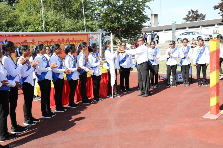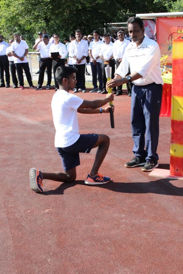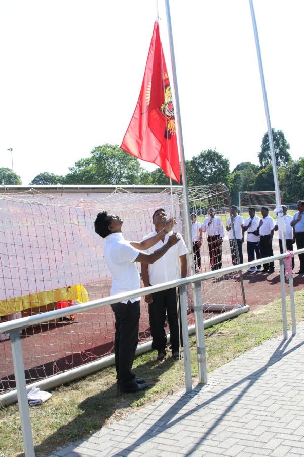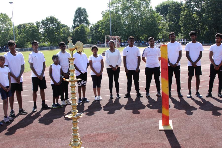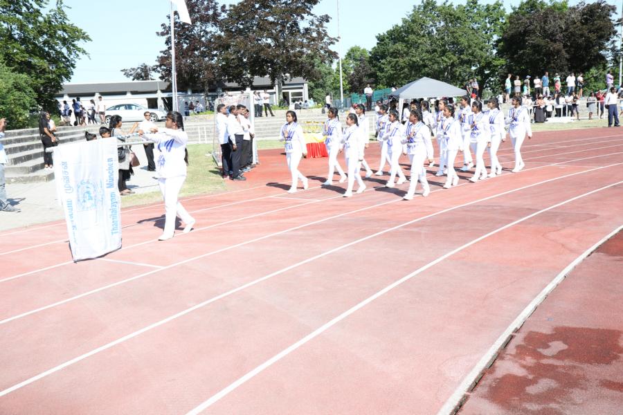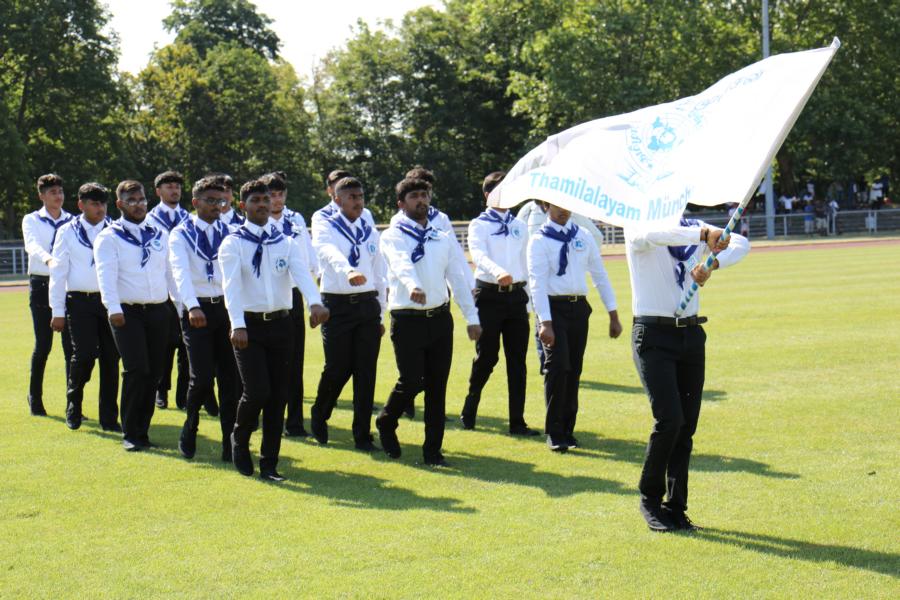 ஈகைச்சுடர் ஏற்றிவைக்கப்பட்டு, யேர்மனியத் தேசியக் கொடியுடன் தமிழீழத் தேசியக் கொடியும் ஏற்றிவைக்கப்பட்டது. பின்பு தமிழ்க் கல்விக் கழகக்கொடி ஏற்றிவைக்கப்பட்டு விளையாட்டு வீர வீராங்கணைகளினால் ஒலிம்பிக் தீபம் மைதானத்தைச்சுற்றி ஏந்திவந்து ஏற்றிவைக்கப்பட்டது. அதனைத் தொடர்ந்து மாணவ மாணவிகளின் அணிவகுப்புக்கள் ஆரம்பமாகின.